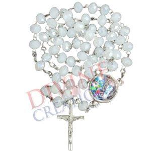 White Ice Beads Rosary with St Benedict Medals